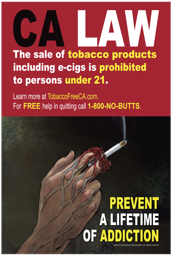 California’s Tobacco Control Program utilized All Points Media’s network of convenience stores throughout California to raise awareness about a law changing that prohibits anyone under 21 from buying any smoking productions (e-cigs or regular cigarettes) in the state of California as of June 9th, 2016.