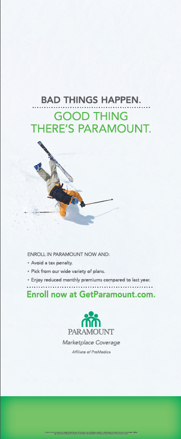 Signage was placed throughout Lucas County in Lifestyle Venues to bring awareness to the uninsured & underinsured residents of the wide variety of Paramount Healthcare’s Marketplace Coverage health insurance plans. This campaign took place during the Open Enrollment period to increase enrollment prior to the deadline.