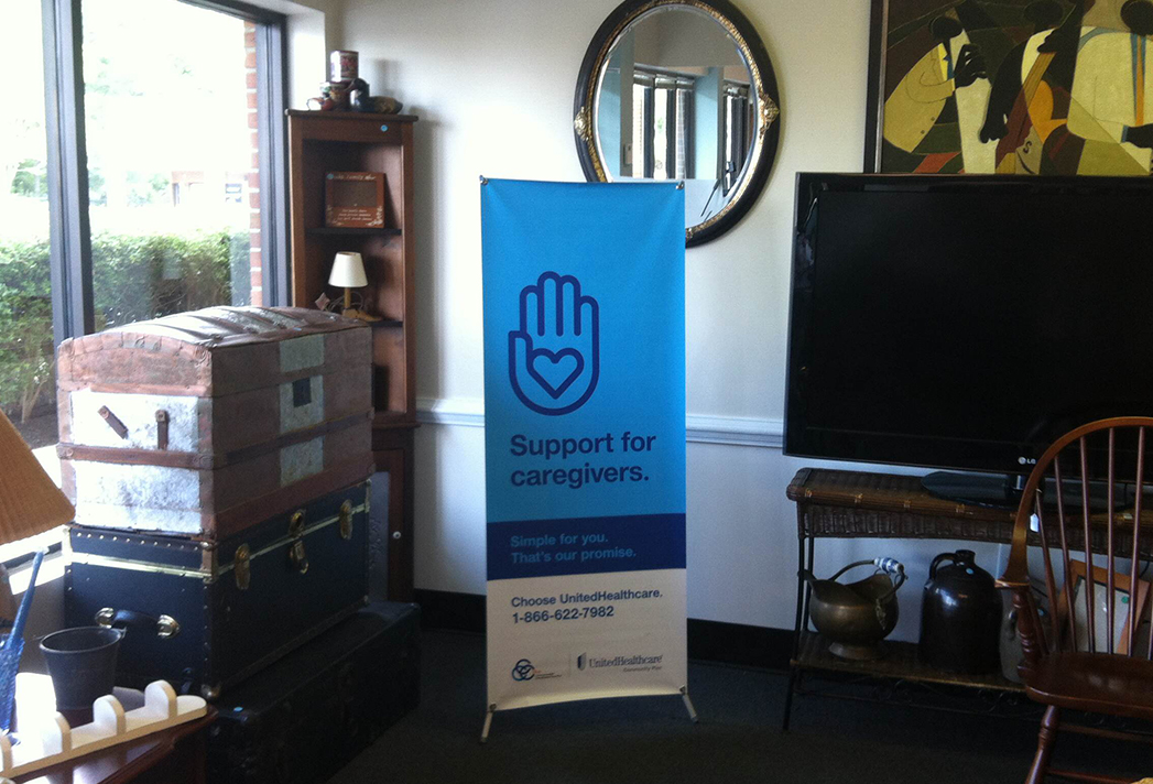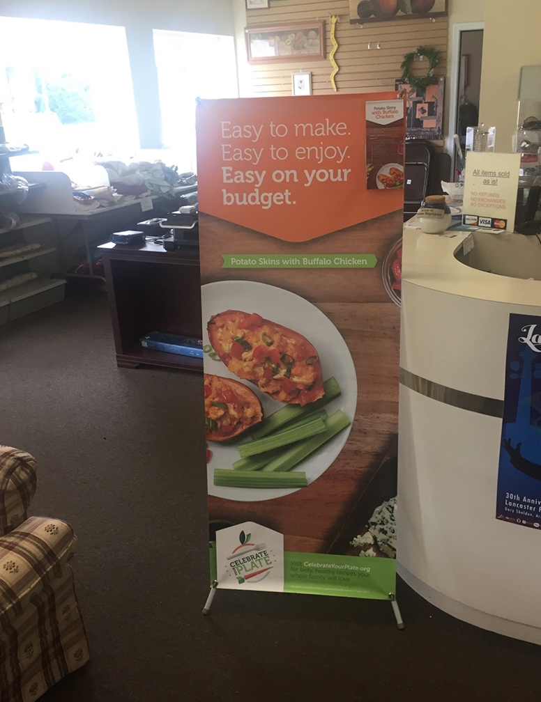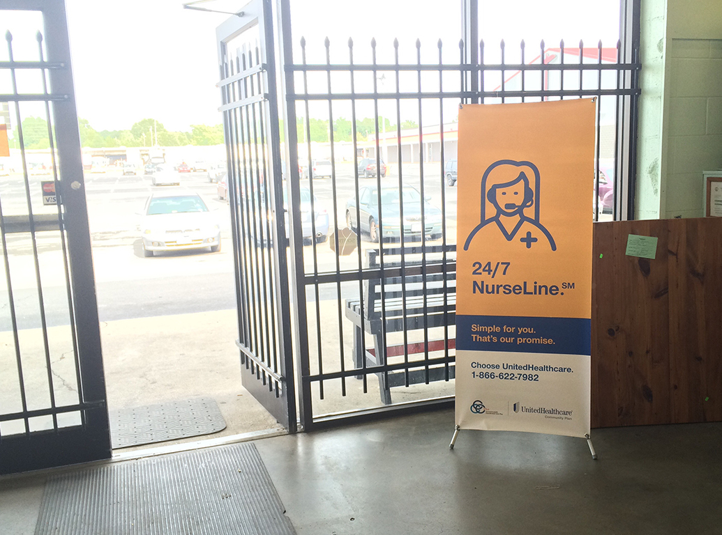 Banner with Banner stand, Posters, Window clings, Floor Graphics, brochure collateral -